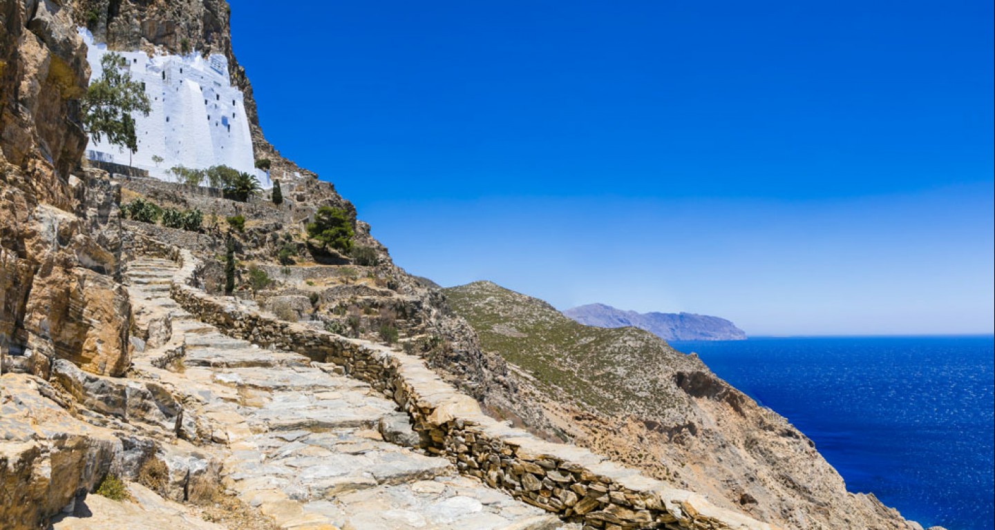 Amorgos, the easternmost island of the Cyclades, combines the beauty of the Aegean Sea with history and civilization.