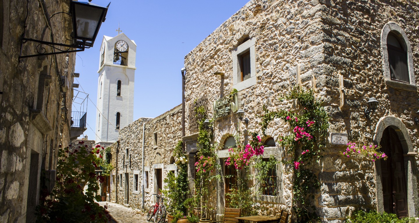 You can visit the "mastic villages", twenty of them, situated on the south part of the island, with the mastic fragrance prevailing all over. Pyrgi is the most well-known of them, the "illustrated village" as they call it, because of the elaborate decorative motifs on the facades of the buildings. Equally well-known is Mesta, the medieval village, with Byzantine style architecture built like a castle. Other villages are Vessa, Armolia, Nenita and Patrika. Anavatos is a medieval abandoned village built on a conical cliff 450 metres above the sea. Its natural fortification impresses the visitors.